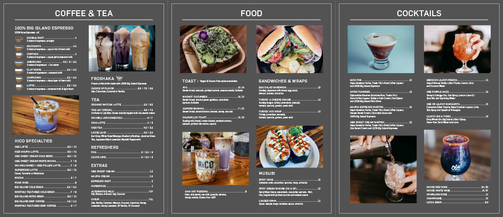 Welcome to HiCO - Hawaiian Coffee, Kona Coffee, a delightful coffee haven nestled in Kailua-Kona. From the moment you step in, the aroma of freshly brewed Kona coffee fills the air, promising a unique island experience. This charming spot offers a diverse menu that beautifully blends local flavors with rich coffee culture.
